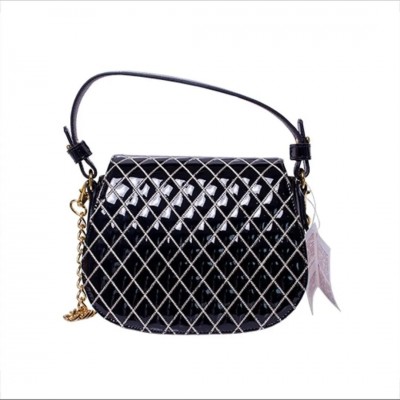 Valentino Orlandi Black Patent Leather Bag With Gold Accessory