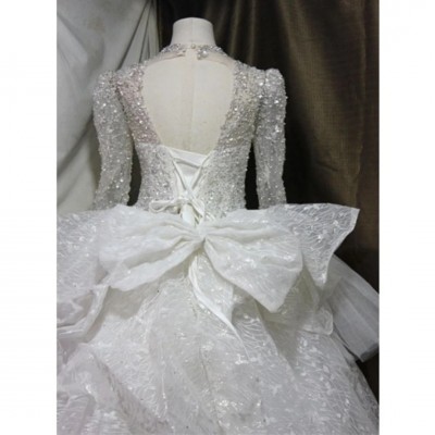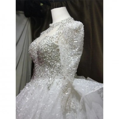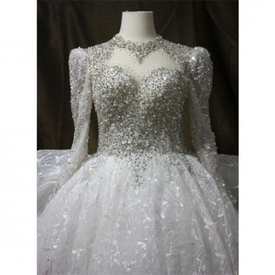 Long Sleeve Sparkly - Stoned, High Neck Wedding Dress