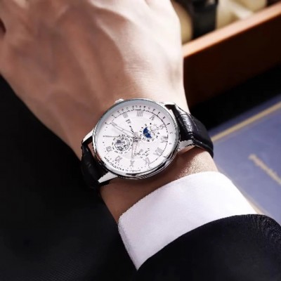 Men’s Business Leather Strap Watch – Black And White - 13x8x3cm