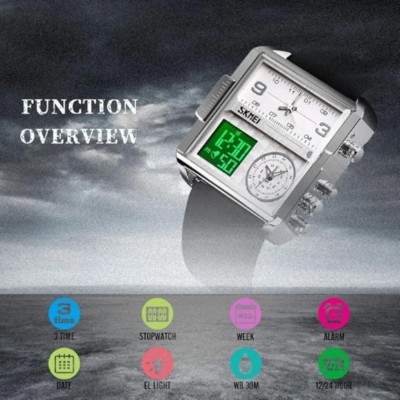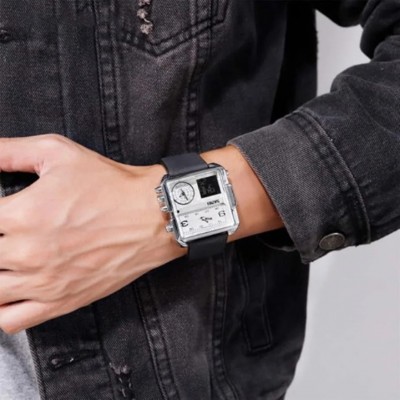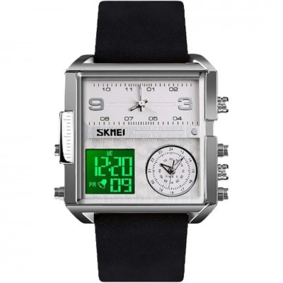 Skmei Men's Square Wrist Watch - Leather Strap - Black