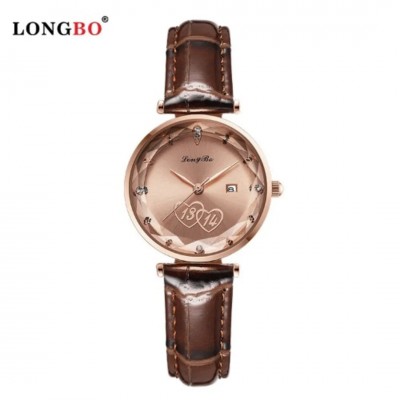 Longbo Brown Leather Watch For Ladies