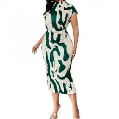 Colorblock Print Midi Dress - Green