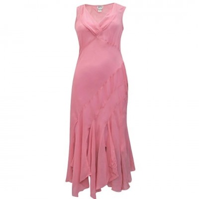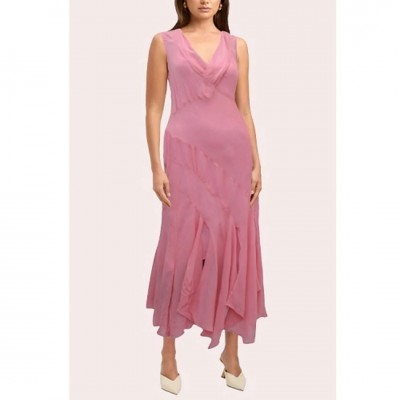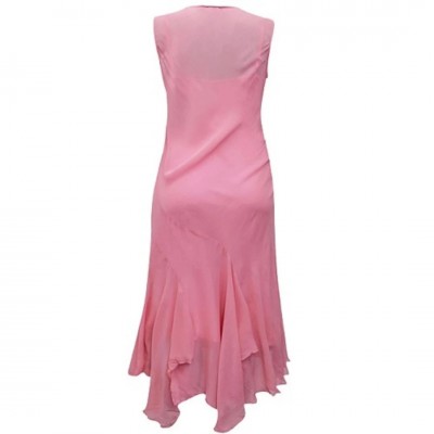 Women Sleeveless Asymmetric Ruffle Dress - Pink